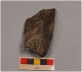 | Description / विवरण | End scraper on side struck flake, irregular retouch on along distal end on dorsal side. |