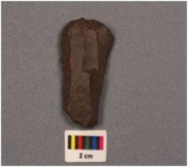 | Description / विवरण | Side scraper detached from on end struck flake, prepared platform, bulb on ventral side, irregular retouch on the left and right cutting edge on dorsal side. |