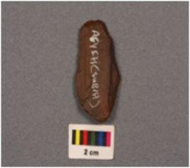 | Description / विवरण | Side scraper detached from end struck flake prepared platform, bulb on ventral side irregular retouch on the right and left cutting edge on dorsal side, blad remonal mark on dorsal side. |