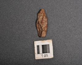 | Description / विवरण | Microlith chert blade with mid ridge on dorsal, diffused bulb on dorsal, broken distal end and triangular in section. |