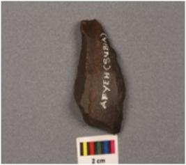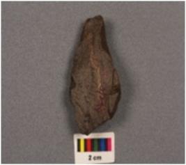 | Description / विवरण | A end scraper on end struck flake with irregular retouching on distal end. |