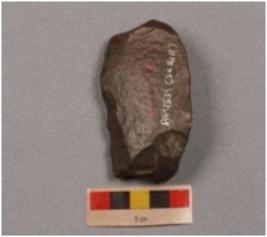 | Description / विवरण | End scraper on end struck flake, prepared platform, bulb on proximal end, use-wear mark on distal end. Triangular section and flake scars on dorsal part. |