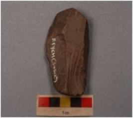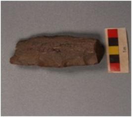 | Description / विवरण | Side scraper on end struck flake, prepared platform. Flake scars on dorsal side, triangular in section. |