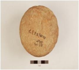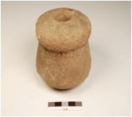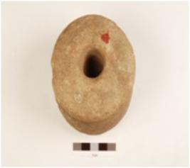 | Description / विवरण | A dabber made on terracotta has circular operative side and a hole on the top and incised design on surface. |