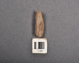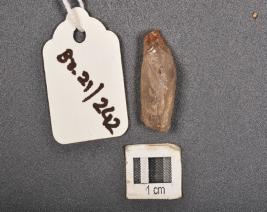 | Description / विवरण | Fragment of crystal core, conical in shape, prepared platform and black scars on surface. |