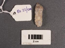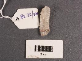 | Description / विवरण | Parallel sided microlithic blunted blade with defused bulb on ventral side, broken along at distal end, use wear marks on right dorsal side and rectangular in section. |