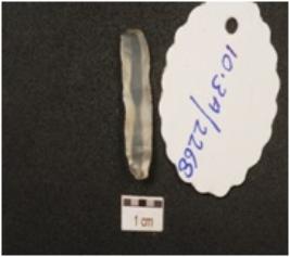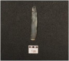| Description / विवरण | A blade made of end struck flake, medial ridge on the dorsal side ,prominent bulb on the ventral side and retouched working edge . |