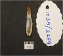 | Description / विवरण | A borer made on end struck flake, three blade scars on surface and pointed working end. |