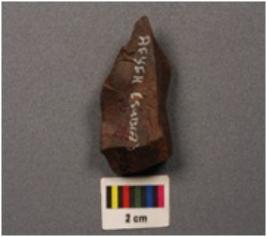 | Description / विवरण | A borer cum side scraper on side struck flake and irregular retouches on one side. |