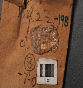 | Description / विवरण | A crystal quartz flake with prepared platform, defused bulb and use wear marks. |