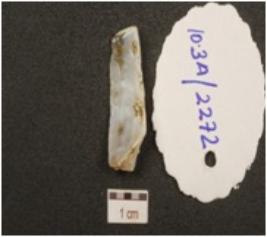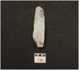 | Description / विवरण | A blade made of end struck flake has ridge on dorsal side and retouched along the working edges. |