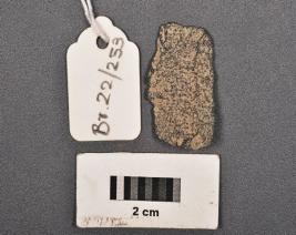 | Description / विवरण | End scraper on end struck flake made on granite, prepared platform, bulb on ventral side and use wear marks on cutting edges. |