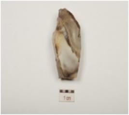 | Description / विवरण | A burin has blade scars on surface and broken tip. |