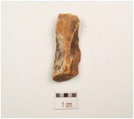 | Description / विवरण | Chert blade with double ridge on dorsal, trapezoid in section and blunt edges. |
