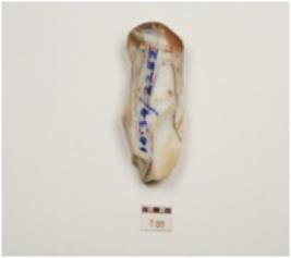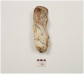 | Description / विवरण | A utilized flake has use wear marks on one edge and blade scars on surface. |