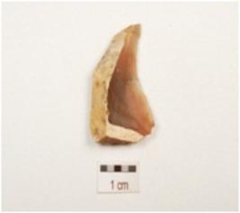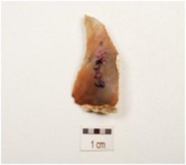 | Description / विवरण | A end struck flake with striking platform, bulb on ventral, single ridge on dorsal, triangular in section and use wear marks on edges. |