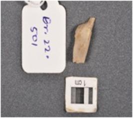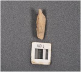 | Description / विवरण | Quartz point with mid ridge, use wear marks on cutting edge and broken proximal end. Triangular in section. |