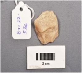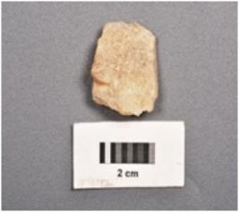 | Description / विवरण | Fragment of quartz stone flake with mid ridge, broken end and triangular in section. |