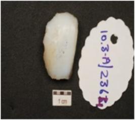 | Description / विवरण | A lunate has retouched working edge and blade scars on surface. |
