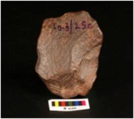 | Description / विवरण | A end scraper made on end struck flake, minor flake scras on dorsal side, retouch on distal end, cutting edges, minor flakes on ventral surface. |