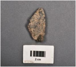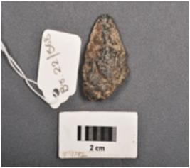 | Description / विवरण | A flake made on basalt with prepared platform and use wear marks on edges. |