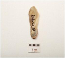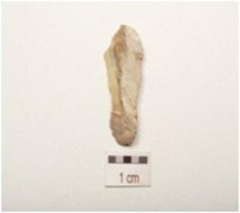 | Description / विवरण | Chert blade with a mid ridge on dorsal side, striking platform, bulb on ventral side, cortex is visible use wear marks along cutting edges and triangular in section. |