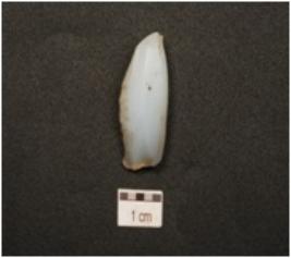 | Description / विवरण | A burin has blade scars on surface and slightly broken pointed tip. |
