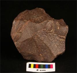 | Description / विवरण | Adjusted core, flake scars on dorsal and ventral side, cutting edges, cortex visible, irregular retouch on working edges. |