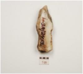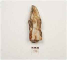 | Description / विवरण | A burin has blade scars on surface and a slightly curved pointed working end. |