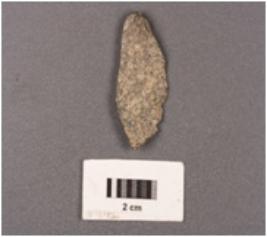 | Description / विवरण | A granite point with a mid ridge on dorsal side, prepared platform. Bulb on ventral side. Broken along at distal end, triangular in section and use wear marks on cutting edges. |