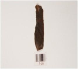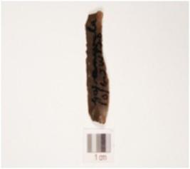 | Description / विवरण | A chert blade, use wear marks along the cutting edge, triangular cross section, mid ridge on dorsal side and prominent bulb on ventral side. |