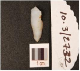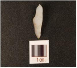 | Description / विवरण | Flake made of chalcedony, flake scars on surface and triangular section. |