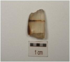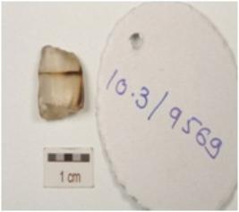 | Description / विवरण | Chalcedony core, partly broken and blade scars on surface. |