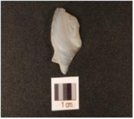 | Description / विवरण | Flake made of chalcedony, flake scars on the surface, prepared platform and prominent bulb on ventral. |