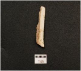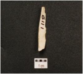 | Description / विवरण | Chert parallel sided blade with a mid ridge on dorsal side, striking platform, partly borken along at one cutting edges and distal end, use wear marks on cutting edge and triangular in section. |