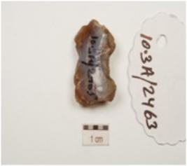 | Description / विवरण | An unfinished borer has blade scars on surface,cortex on one side and a broken pointed distal end. |