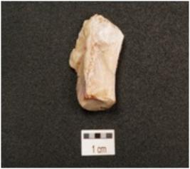 | Description / विवरण | Chert flake striking platform one ridge on dorsal side, diffused bulb on ventral side and cortex visible on smooth surface. |