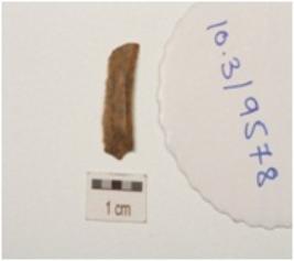 | Description / विवरण | Parallel sided chert blade, proximal end broken, two ridge on dorsal surface and wear marks on both working edges. |