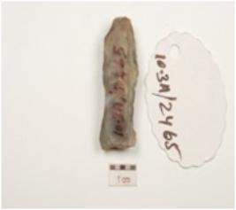 | Description / विवरण | A broken borer has blade scars on surface, cortex on one side and broken tip. |