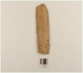 | Description / विवरण | A parallel sided blade made of chert,has three ridges on dorsal side, used wear marks on the working edges and triangular cross-section. |
