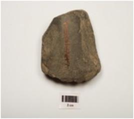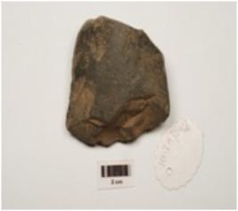| Description / विवरण | Fragment of a handaxe has flake scars. |