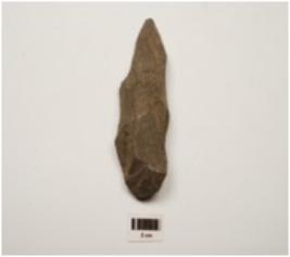 | Description / विवरण | A handaxe has flake scars on both sides and a pointed end. |