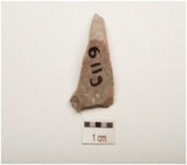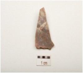 | Description / विवरण | Chert flake smooth surface and use wear marks on working edge. |