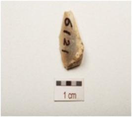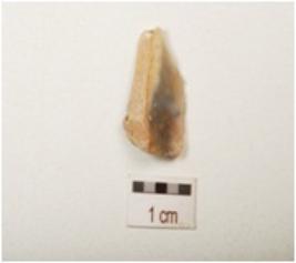 | Description / विवरण | Chalcedony blade with a mid ridge on dorsal side, prepared platform, diffused bulb on ventral side partly broken, cortex on dorsal side, use wear marks on cutting edges, and triangular in section. |
