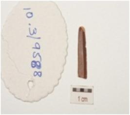 | Description / विवरण | Parallel sided chert blade, distal end broken, diffused bulb trapzoidal cross section and use marks on both working edges. |