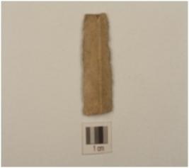 | Description / विवरण | A single ridged parallel sided blade made of chert,retouched working edges and triangular cross-section. |
