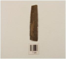 | Description / विवरण | A single ridged parallel sided blade,made of chert, used wear marks and triangular corss-section. |