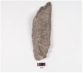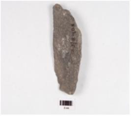 | Description / विवरण | A flake made of basalt stone, rough surface and flake scars on the surface. |