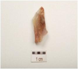 | Description / विवरण | Chalcedony blade with a ridge on dorsal side. Broken from both edns, and use wear marks on cutting edges. |