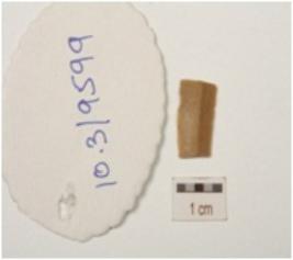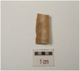 | Description / विवरण | Parallel sided chert blade, both ends broken, triangular cross section, a ridge on dorsal surface and use wear marks on both working edge. |